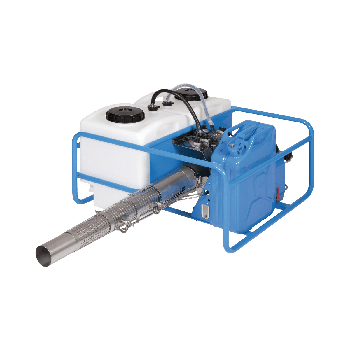 El equipo pulsFOG K-30-20 de marco grande es un termonebulizador estacionario con 2 depósitos de producto de 55 litros. Como todos los equipos BIO, cuenta con un sistema de reducción térmica patentado, diseñado para la aplicación de ingredientes sensibles al calor.